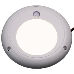 Plafón de exterior fabricado en material plástico estanco IP67 con interruptor incorporado. 1 x 3 LEDs blanco cálido. Superpuesto. Voltaje : 12 v. Potencia: 0,22 w. Medidas: Diámetro: 90 mm. Altura 25 mm.