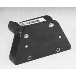 Fabricada en aluminio anodizado. Medidas de base 70x27 mm, para cabos hasta 14 mm. Fijación por dos tornillos de 5 mm. Distancia entyre centros : 43 mm.