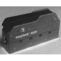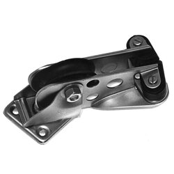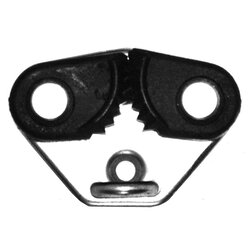 Fabricado en acero inox. AISI 316, roldana del­rín y mordaza ref. 901122. Para escota hasta10 mm. Base plana de 47x47 mm. Angulo de mordaza regulable.