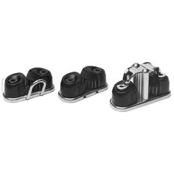 Fabricadas en delrín y acero inoxidable, con ejes taladrados para fijación robusta. Las levas utilizan la fórmula de guiador servo original que optimiza el trayecto del cabo a los dientes de la mordaza, los cuales llevan incrustados refuerzos inoxidables para evitar el desgaste de los dientes.