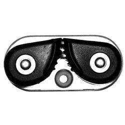 Fabricada en acero inoxidable, levas delrín y dos dientes de acero en cada leva, con anilla para guiar el cabo. Medidas de base 60x42 mm, para cabos hasta 10 mm.